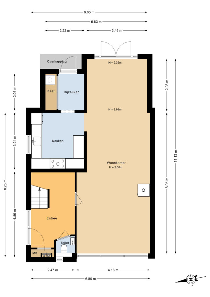 Via de royale hal met meterkast en toiletruimte is er toegang tot de riante gezellige leefruimte met open keuken en openslaande deuren.
