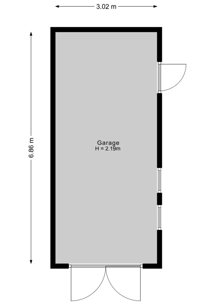 De garage is aan de voorzijde voorzien zien van openslaande deuren.