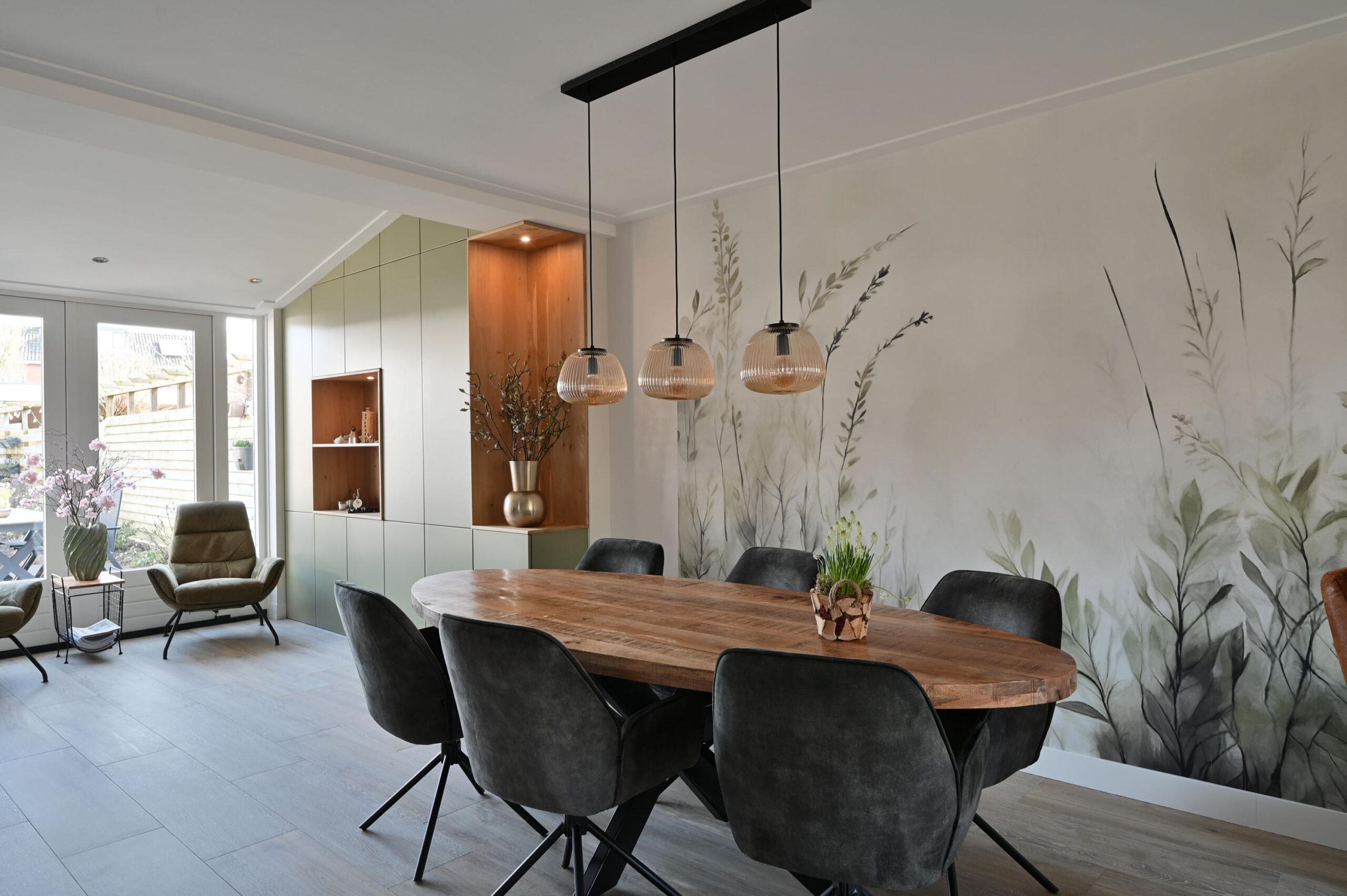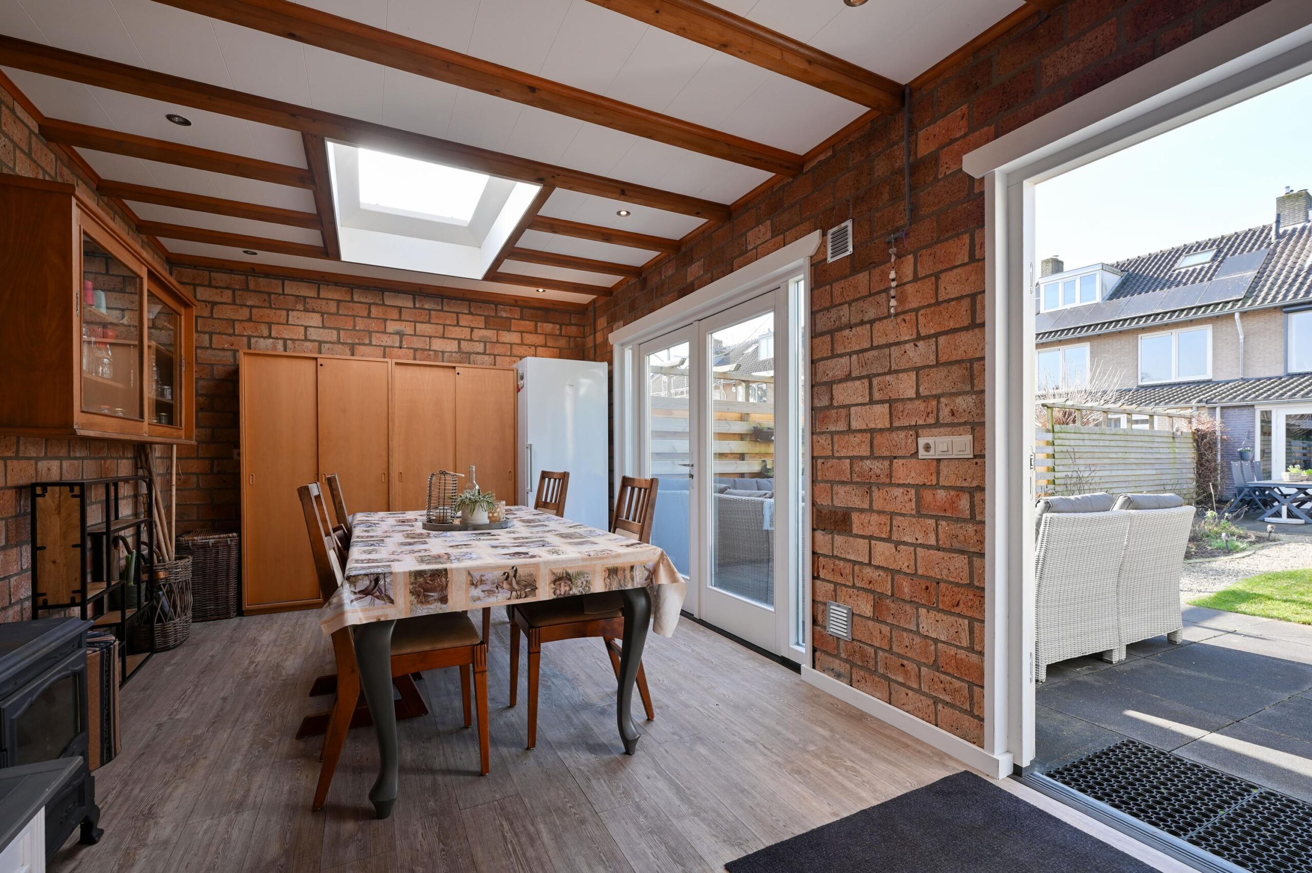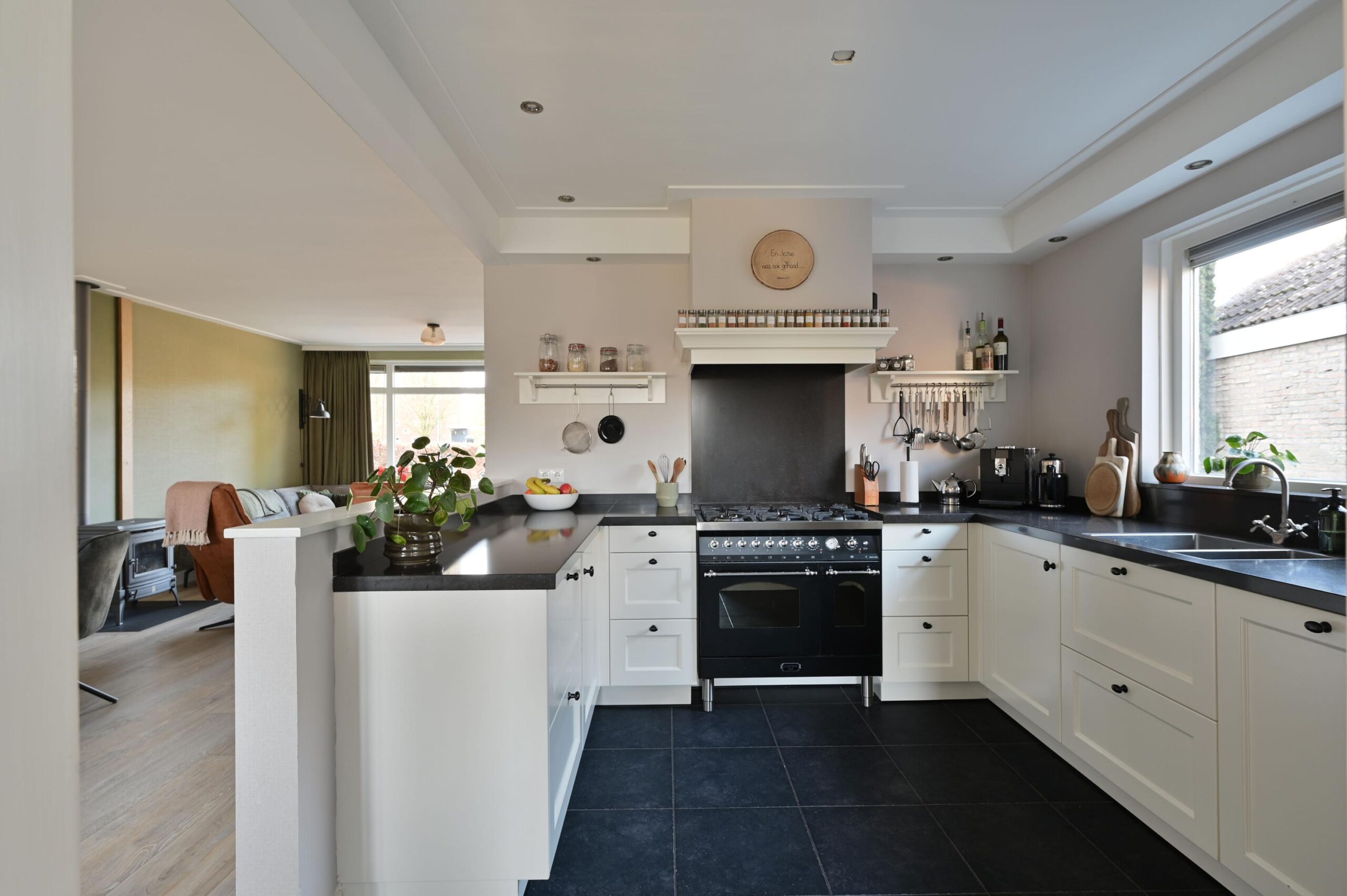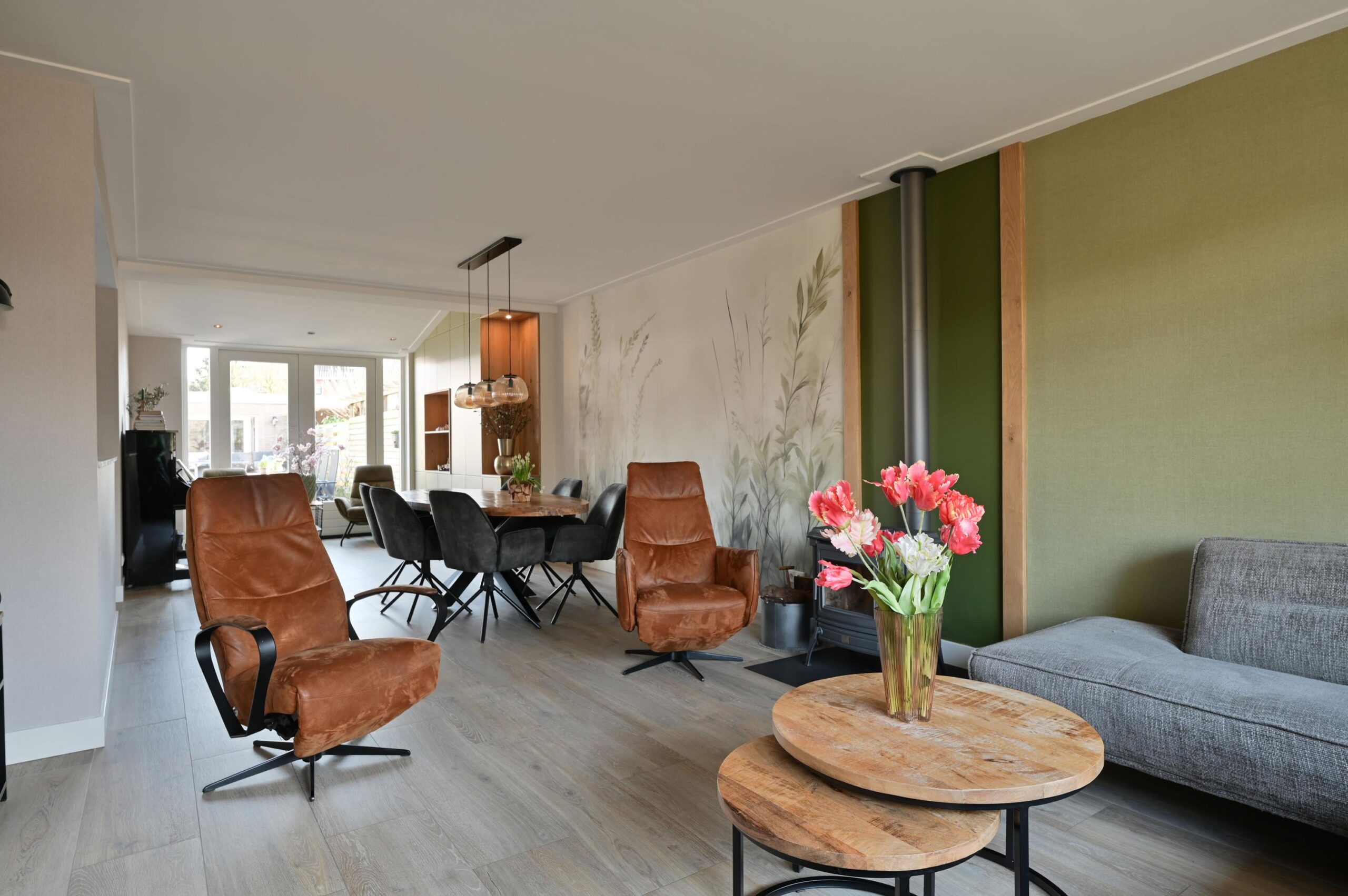 De riante leefruimte kenmerkt zich door de prettige lichtinval en de fraaie plavuizenvloer met vloerverwarming. Tevens is er een aansluiting voor een houtkachel aanwezig. In 2016 is de woning aan de achterzijde stijlvol verbouwd waardoor er een heerlijke verlenging van de leefruimte voorzien van openslaande deuren en op maat gemaakte kastenwand is gerealiseerd. Ook is destijds de praktische bijkeuken met achterentree aangebouwd.