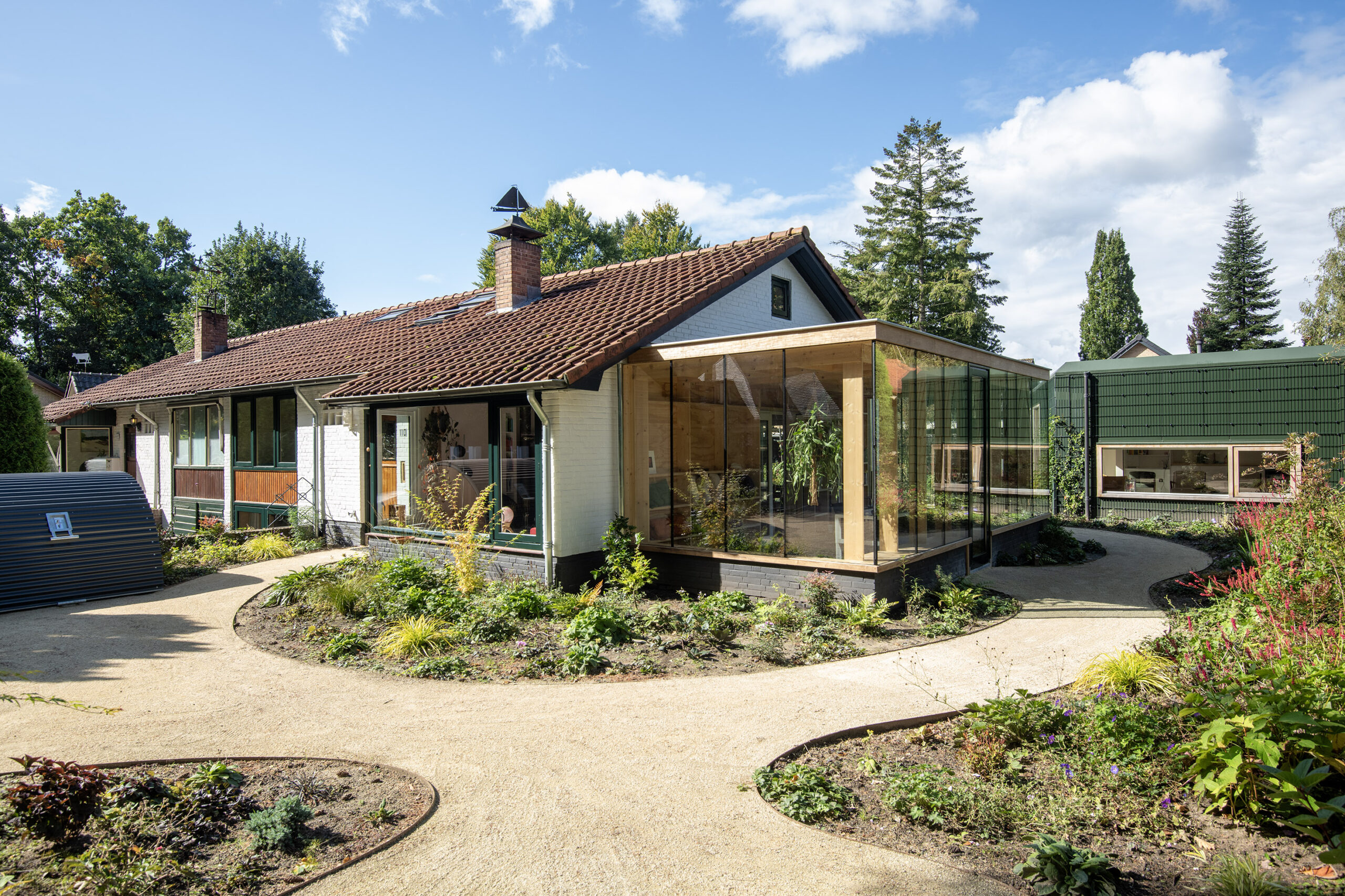 De mantelzorgwoning is op fraaie wijze geïntegreerd in het stijlvolle tuinontwerp.