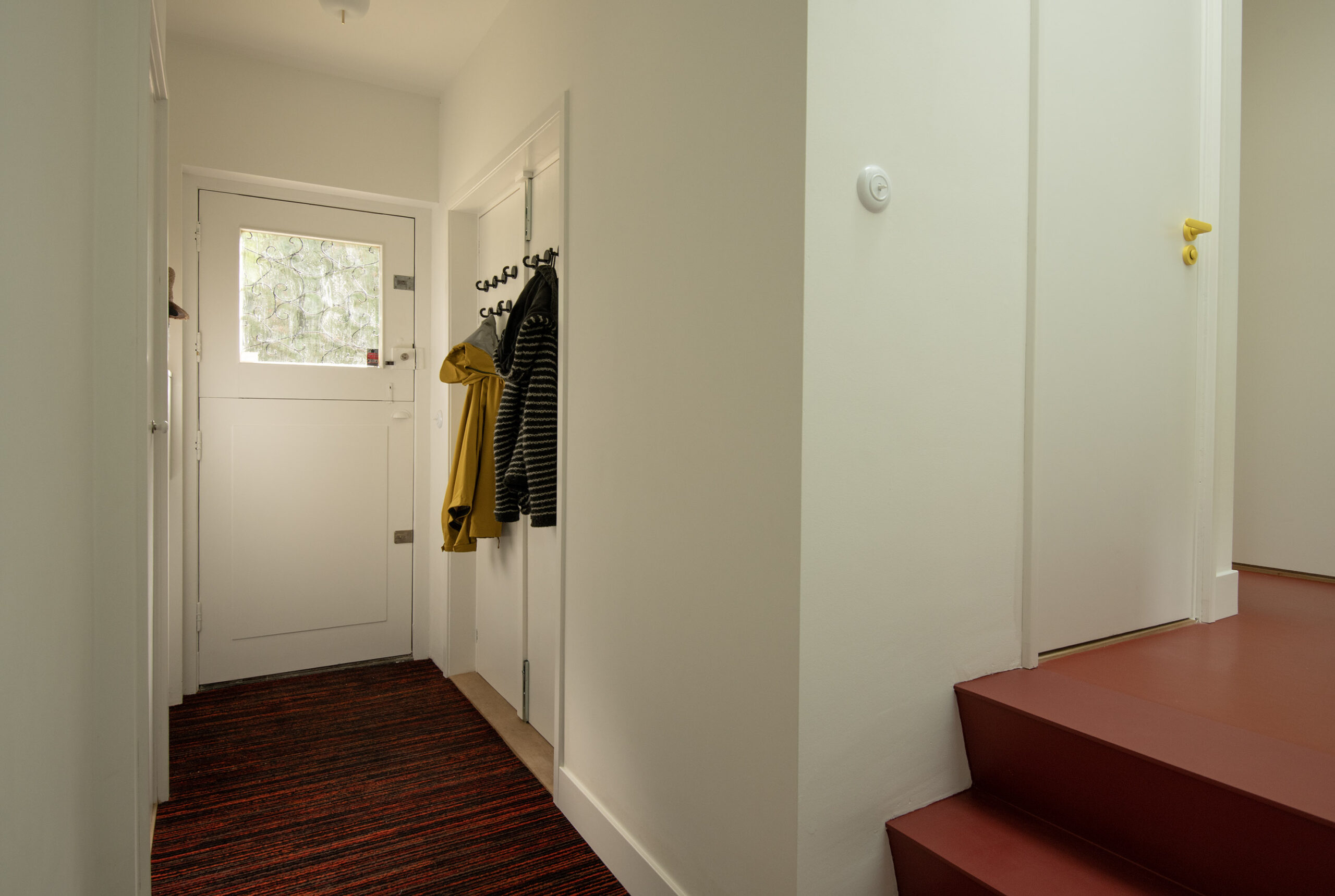 Vanuit de hal is via een paar traptreden de slaapverdieping bereikbaar, welke iets hoger gelegen is dankzij het speelse splitlevel ontwerp van de woning.