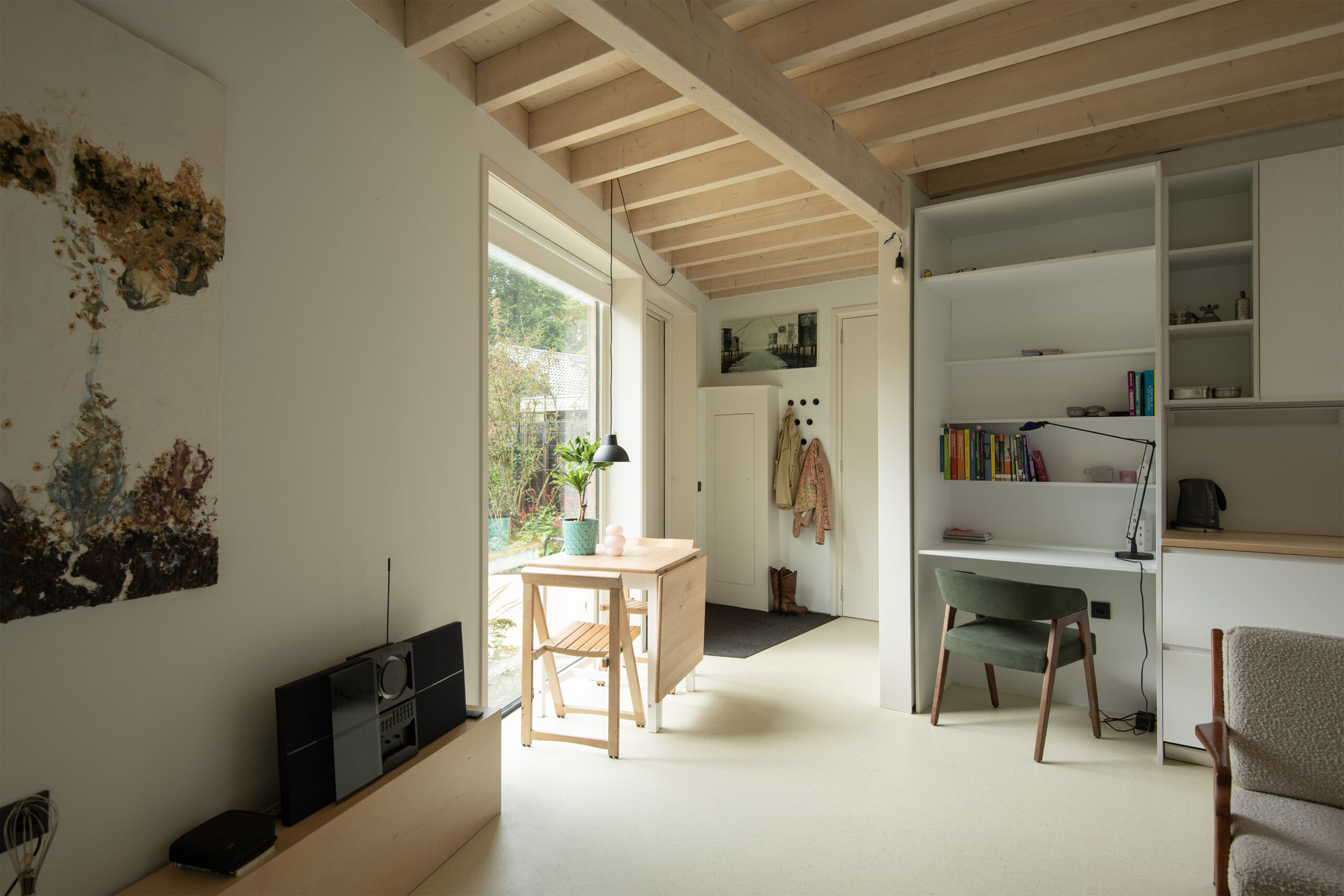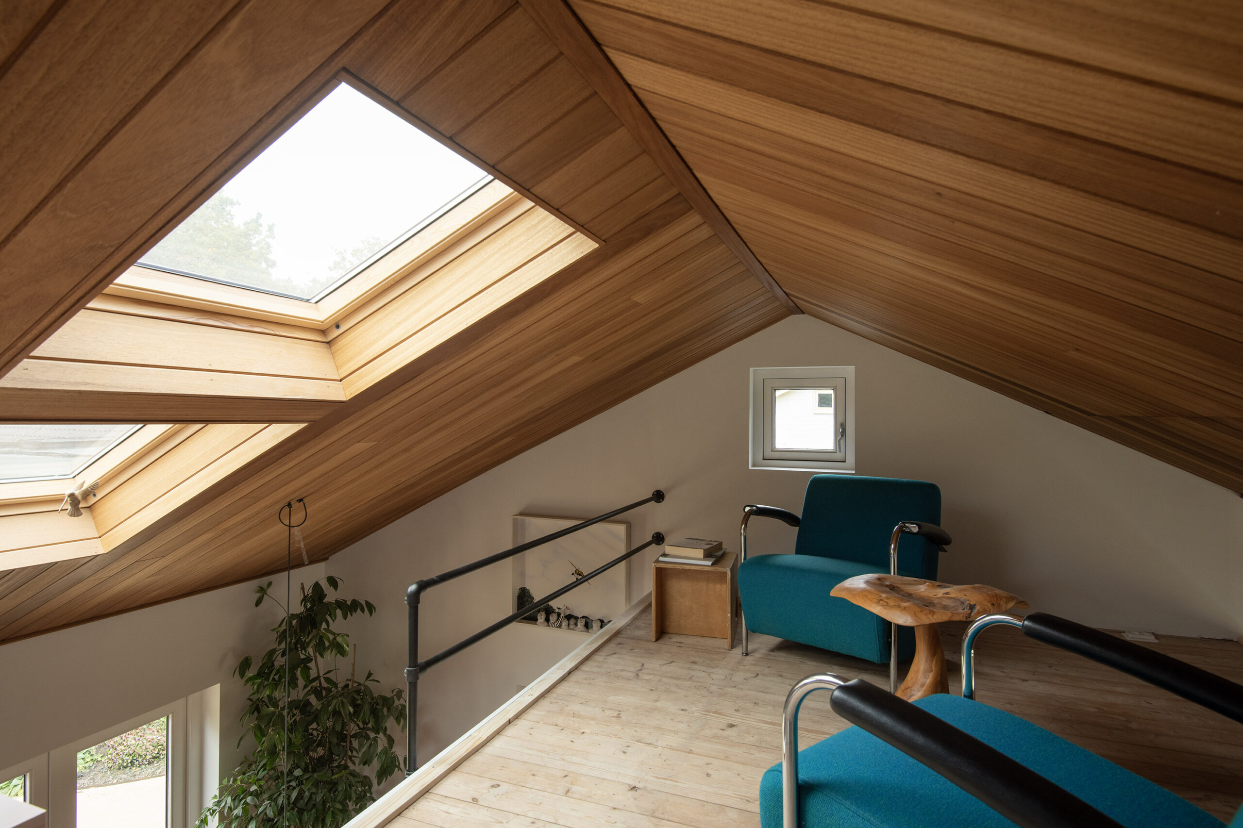 Dankzij de dakramen en het charmante topgevelraam is ook hier volop daglicht aanwezig.