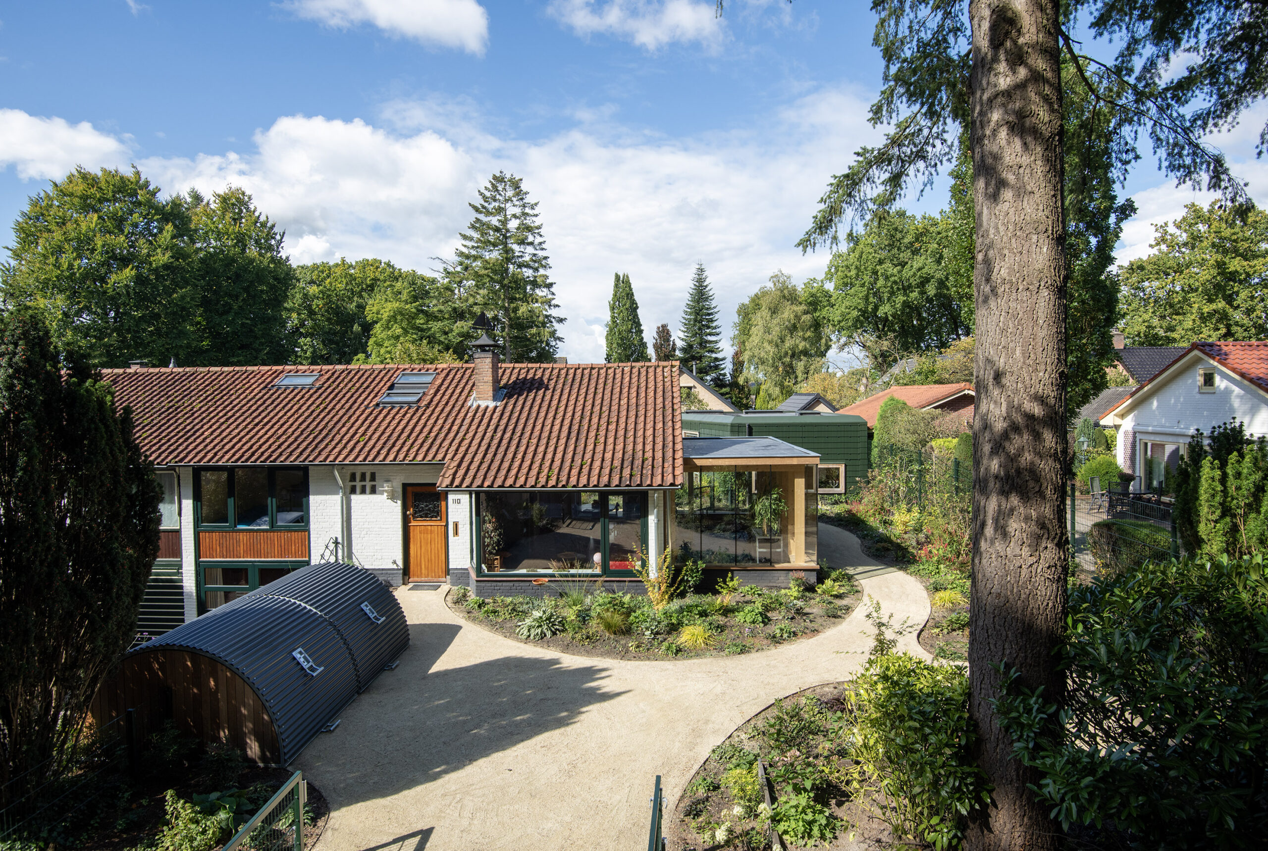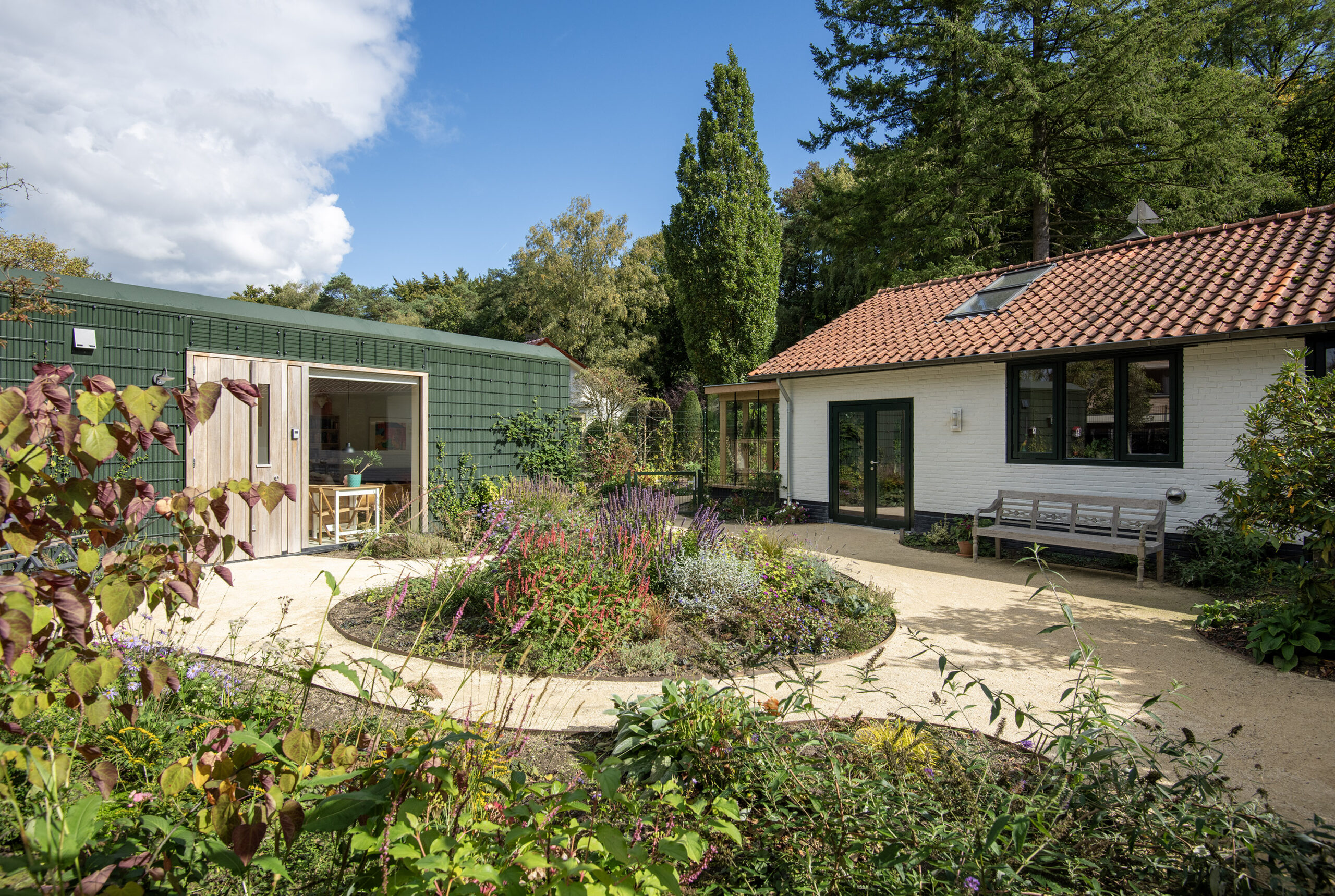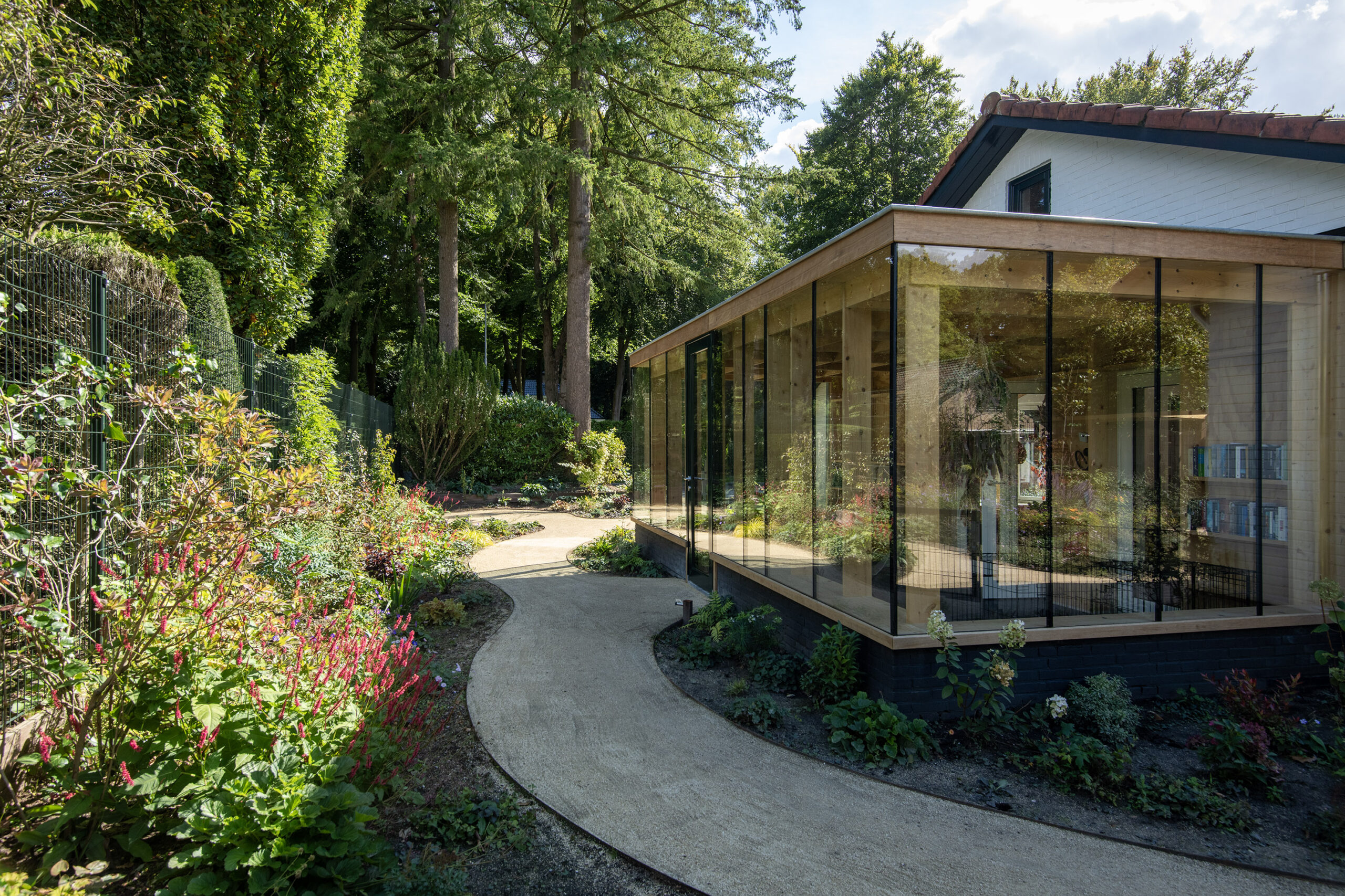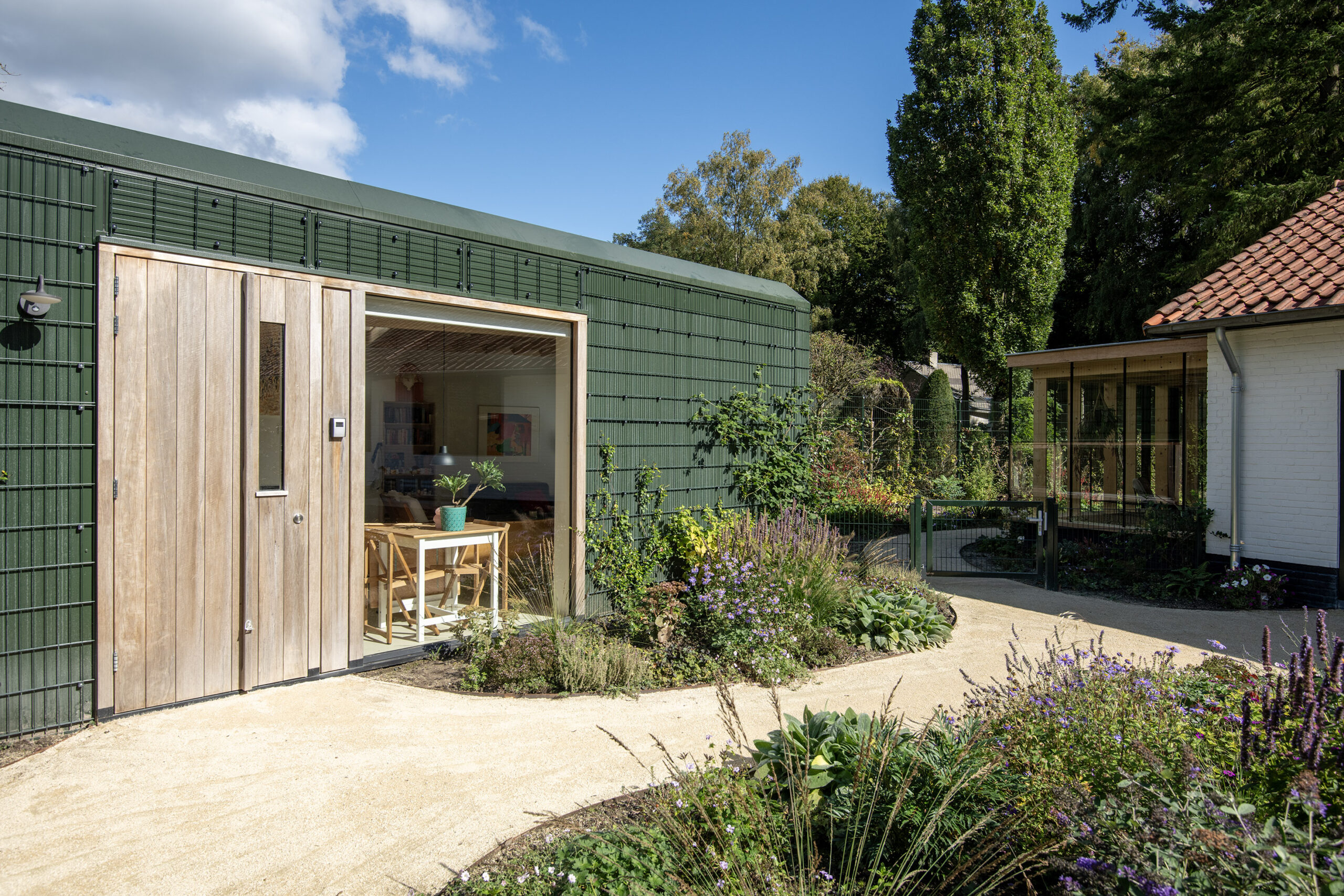 De mantelzorgwoning is op fraaie wijze geïntegreerd in het stijlvolle tuinontwerp.