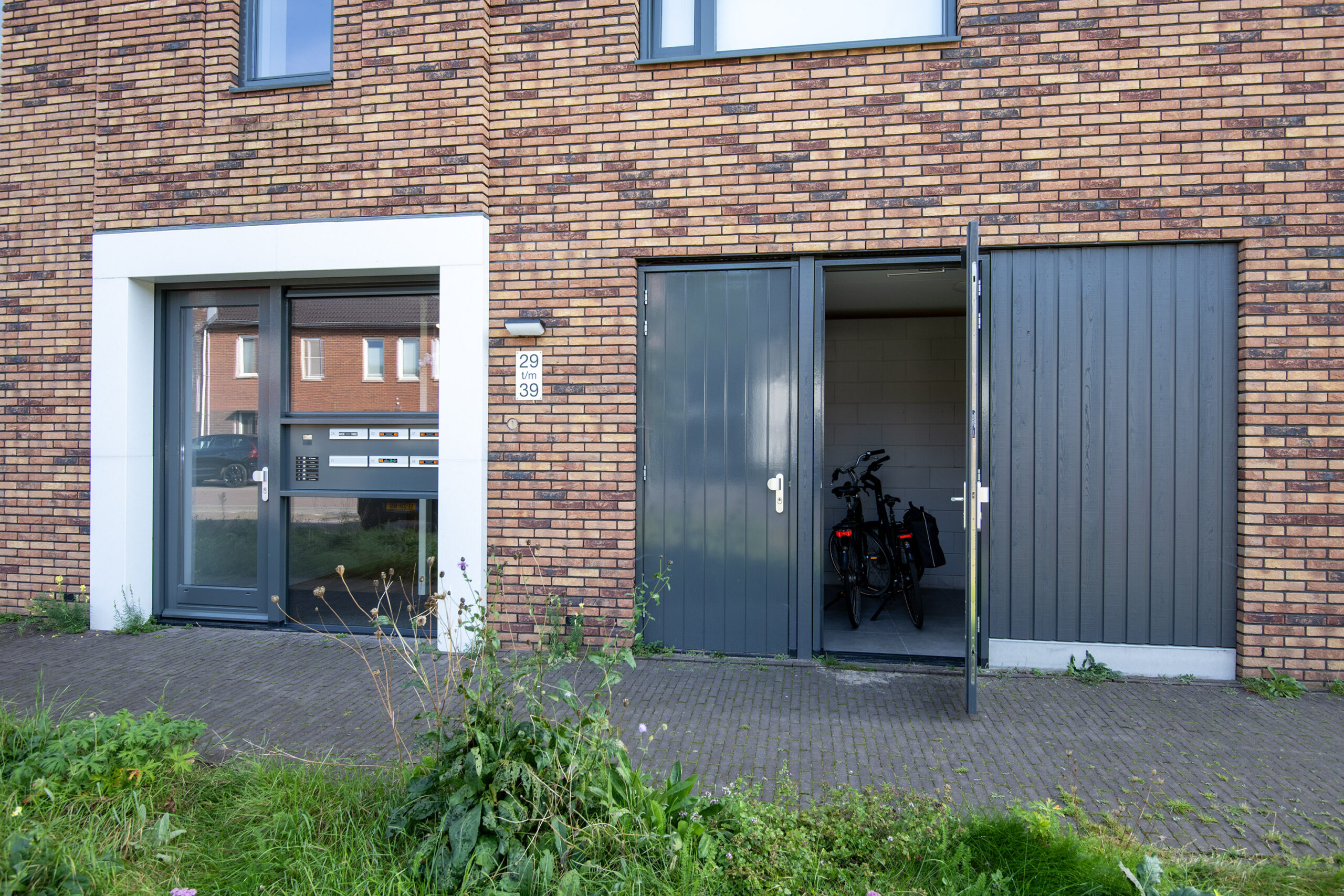 Deze berging biedt extra gemak en opbergruimte en is ideaal voor het stallen van fietsen, gereedschap of seizoensspullen. De berging is bereikbaar aan de voorzijde van het complex, waar zich tevens de hoofdentree, videofooninstallatie en brievenbussen bevinden.