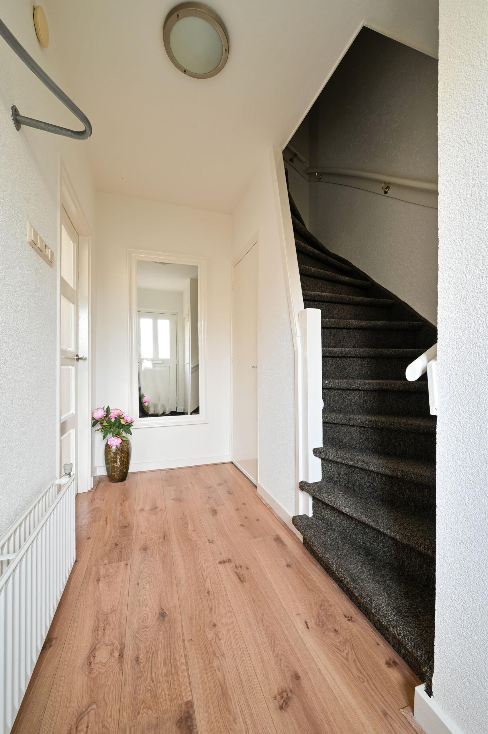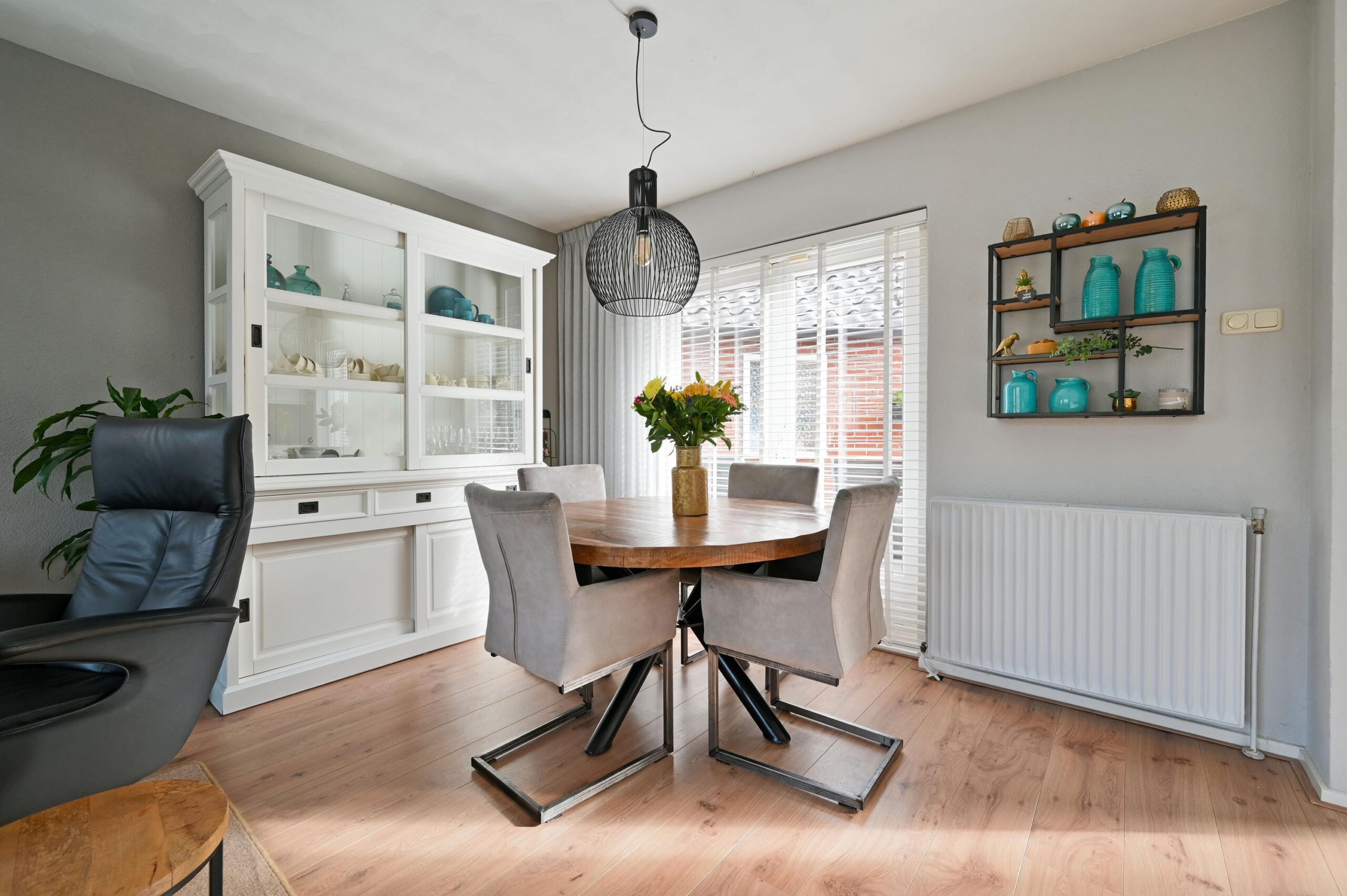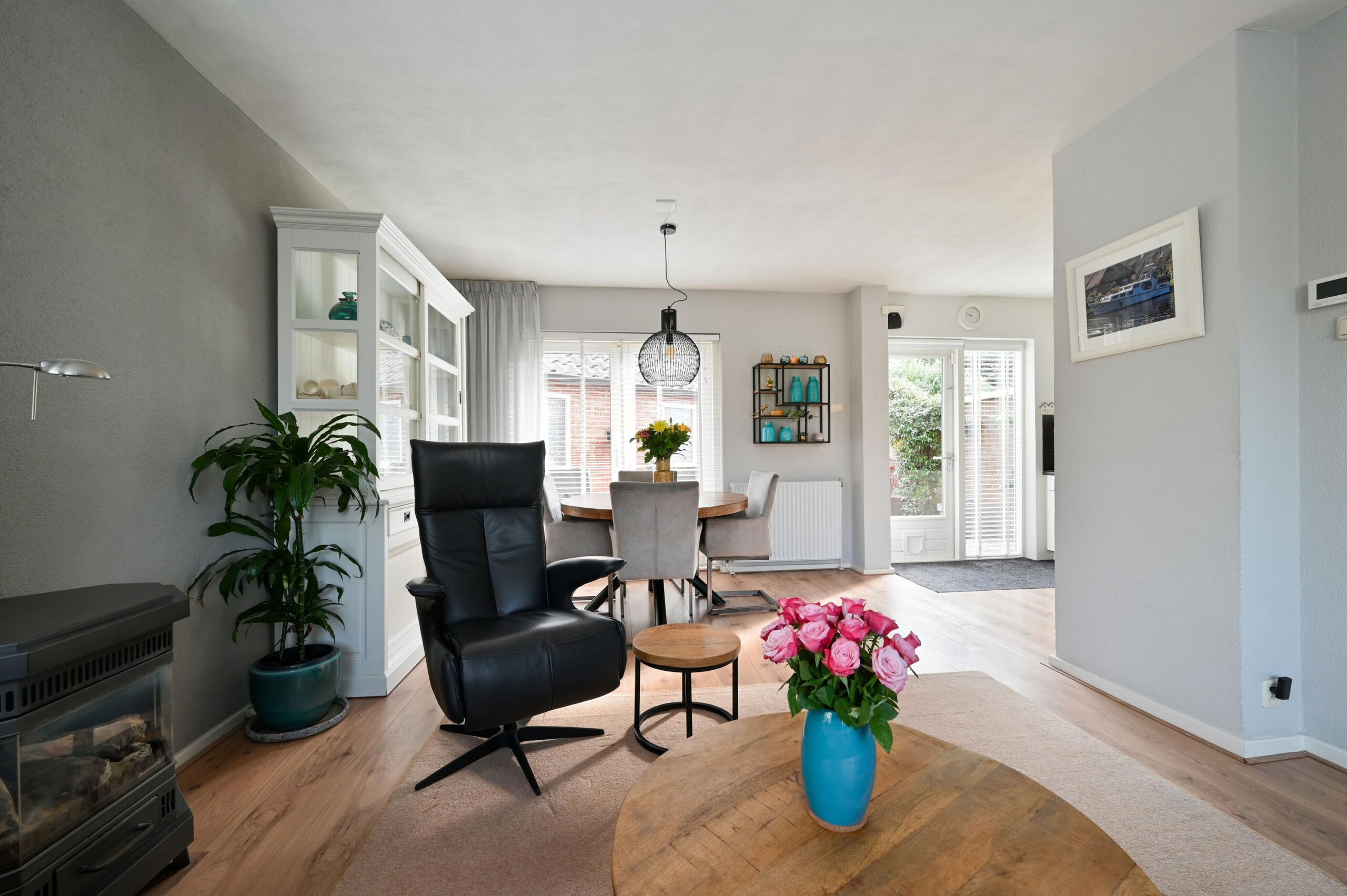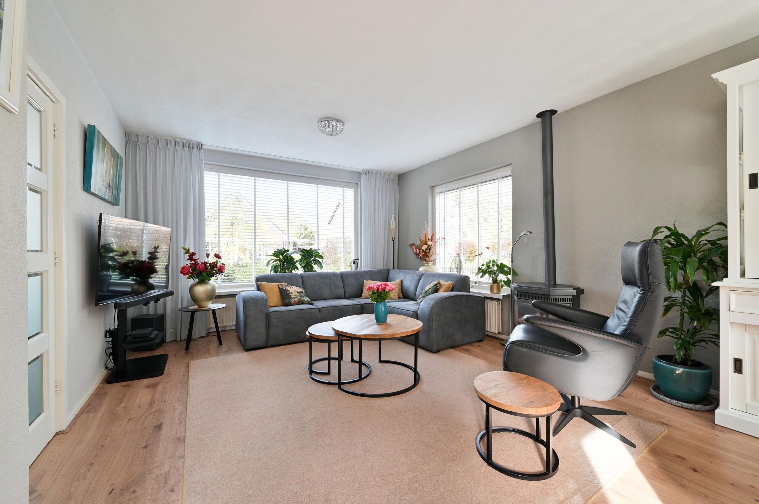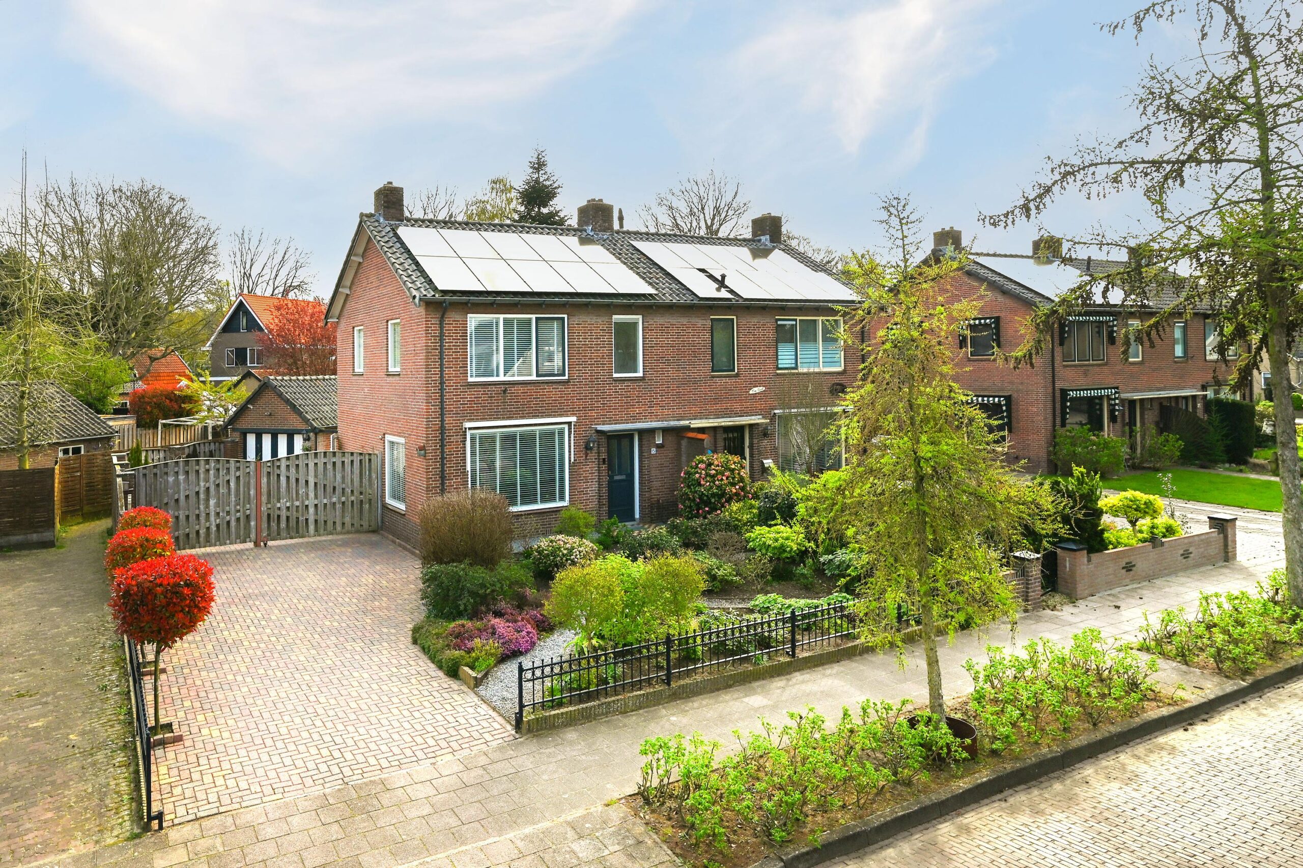 Sfeervolle, lichte half vrijstaande woning met vrijstaande stenen garage en royale oprit. Gelegen aan een rustige straat in een geliefde woonomgeving, op korte afstand van het centrum en de bossen. Deze goed onderhouden woning uit 1965 is in de loop der jaren verbouwd en gemoderniseerd tot een comfortabele gezinswoning. De woning maakt een verzorgde indruk en combineert prettig wooncomfort met een fijne lichtinval en praktische indeling. De entree/hal met toiletruimte en trapopgang geeft toegang tot de provisiekelder en de woon-/eetkamer. De lichte doorzonkamer met gaskachel en openslaande deuren vormt een heerlijke leefruimte met een fijne verbinding naar buiten. De keurige open keuken beschikt over een achterentree.
