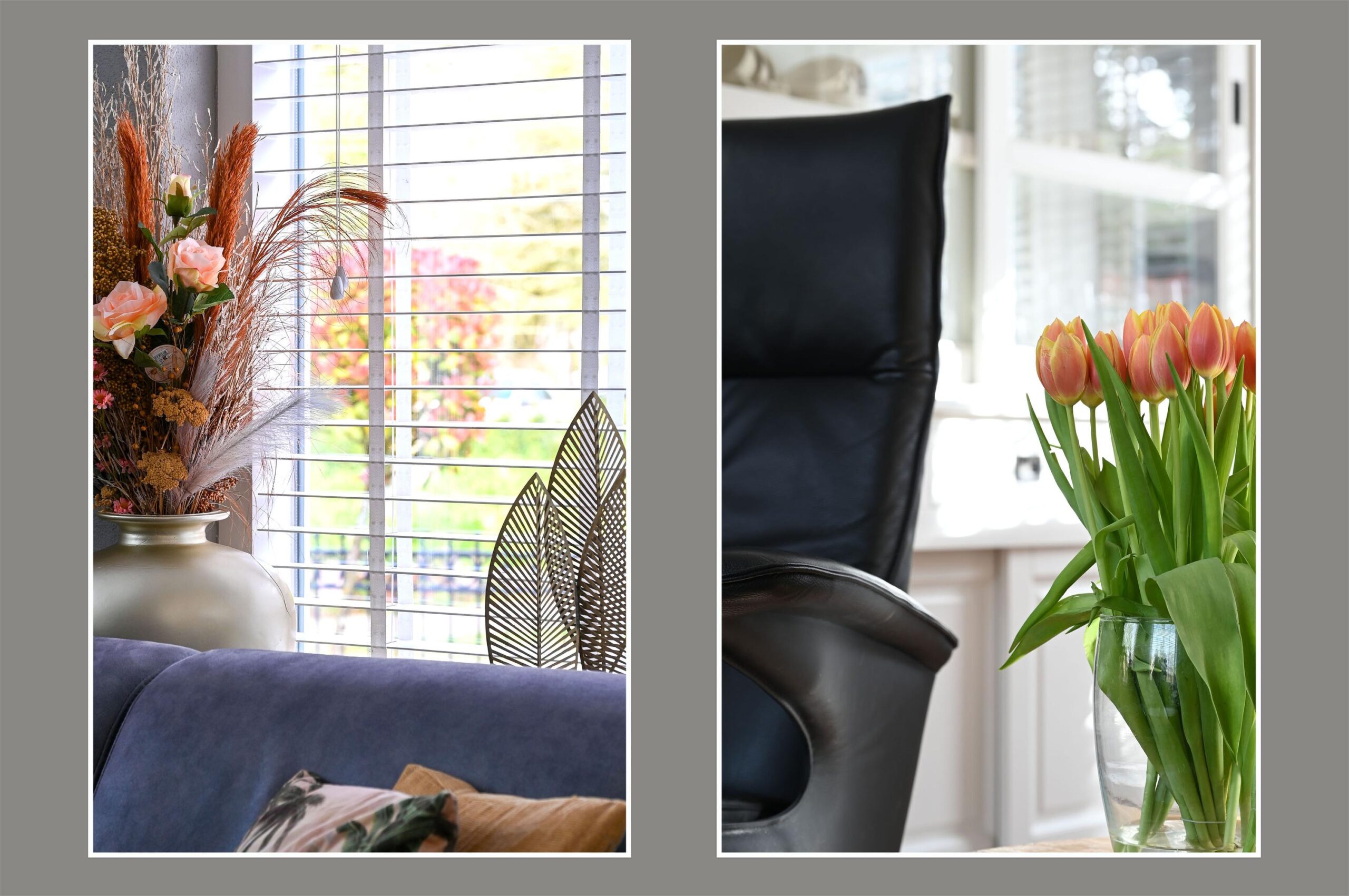 De heerlijke, lichte doorzon woon-/eetkamer heeft een gezellige, eigentijdse uitstraling. Dankzij het grote raam aan de voorzijde en het zijraam valt het daglicht rijkelijk naar binnen. Aan de achterzijde zorgen openslaande deuren voor extra daglicht en een directe verbinding met de tuin. Het zitgedeelte aan de voorzijde is