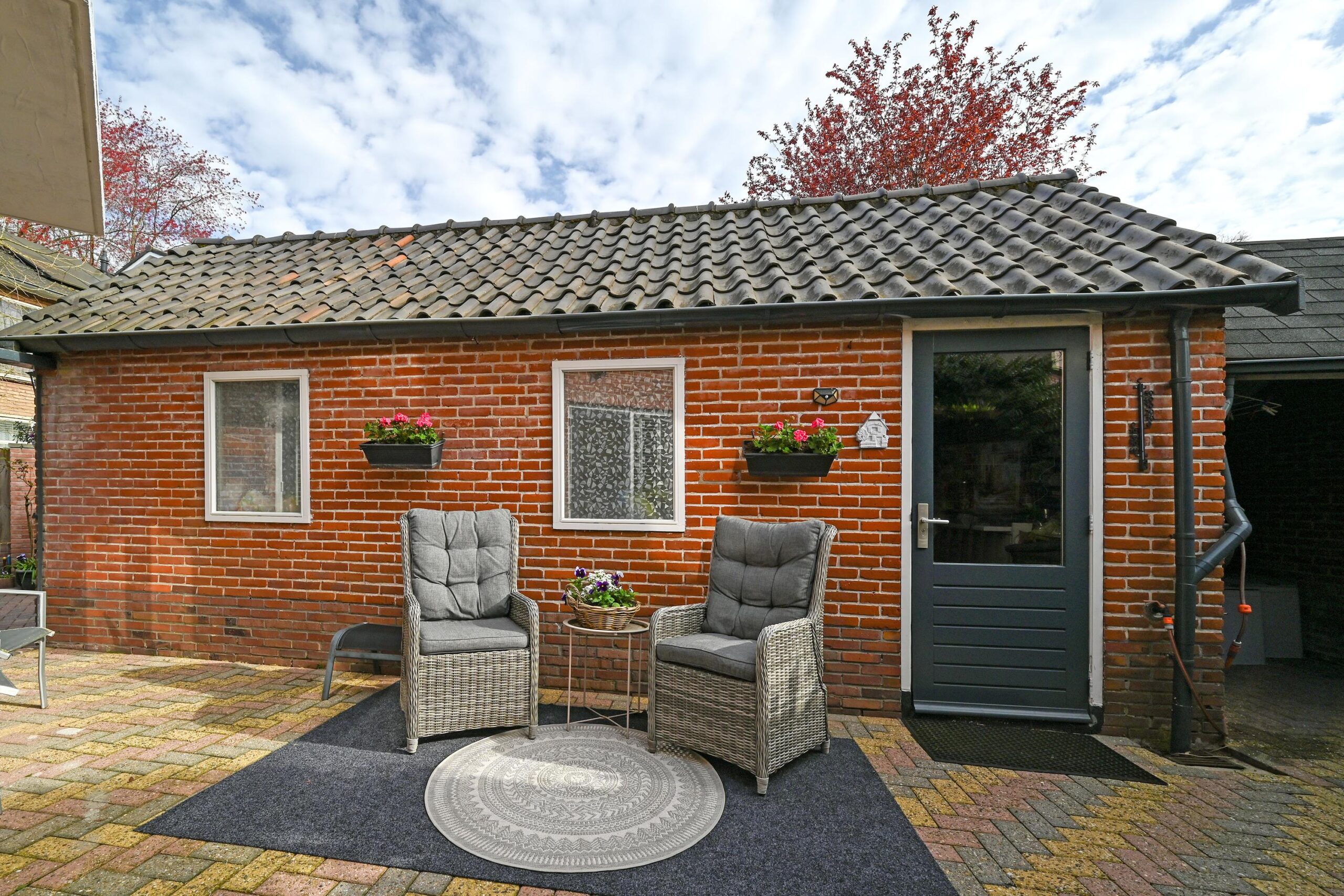 aangelegde tuin biedt volop privacy en fijne zitplekjes. De garage met aangrenzende overkapping is in gebruik als berging en voorzien van diverse faciliteiten.
