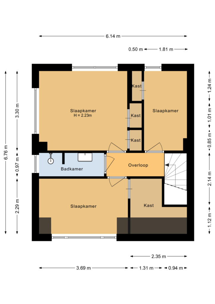 1e verdieping: op de 1e verdieping bevinden zich 3 slaapkamers, allen voorzien van een dakkapel, vaste kastruimte en vloerbedekking. De kamers hebben ieder hun eigen formaat, wat zorg voor een veelzijdige indeling en verschillende gebruiksmogelijkheden. Daarnaast is er een eenvoudige maar nette badkamer, uitgerust met een inloopdouche, wastafel, opberg-meubels en spiegelkastje. Dankzij het daglicht oogt de ruimte fris en licht. De bijkeuken vormt een handige schakel tussen binnen- en buiten, ideaal voor dagelijks gebruik.