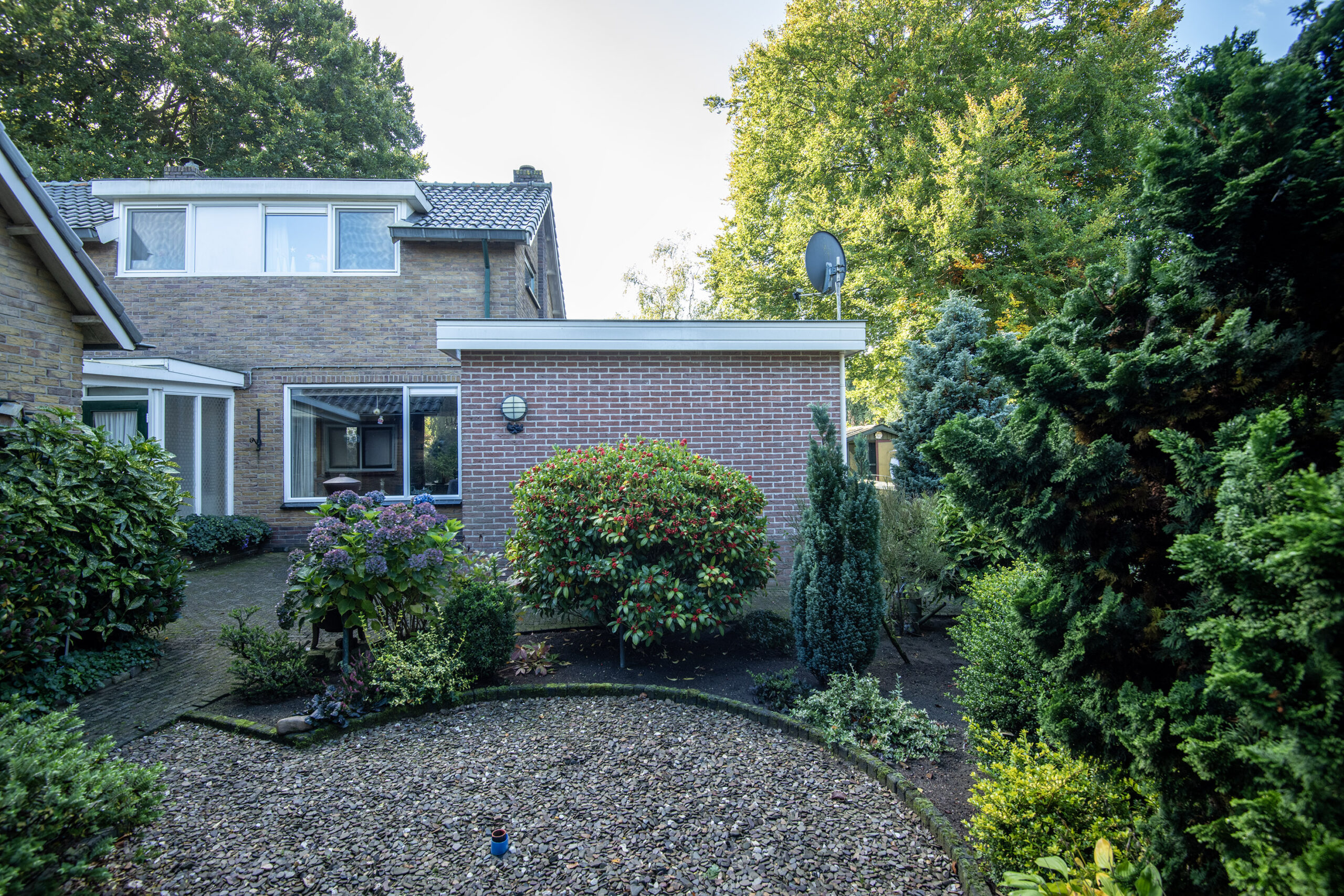 Aan de voorzijde bevindt zich een diepe voortuin met royale oprit naar de carport. De besloten achtertuin is ingericht met veel natuurlijk groen, een heerlijke plek om in alle privacy te genieten!