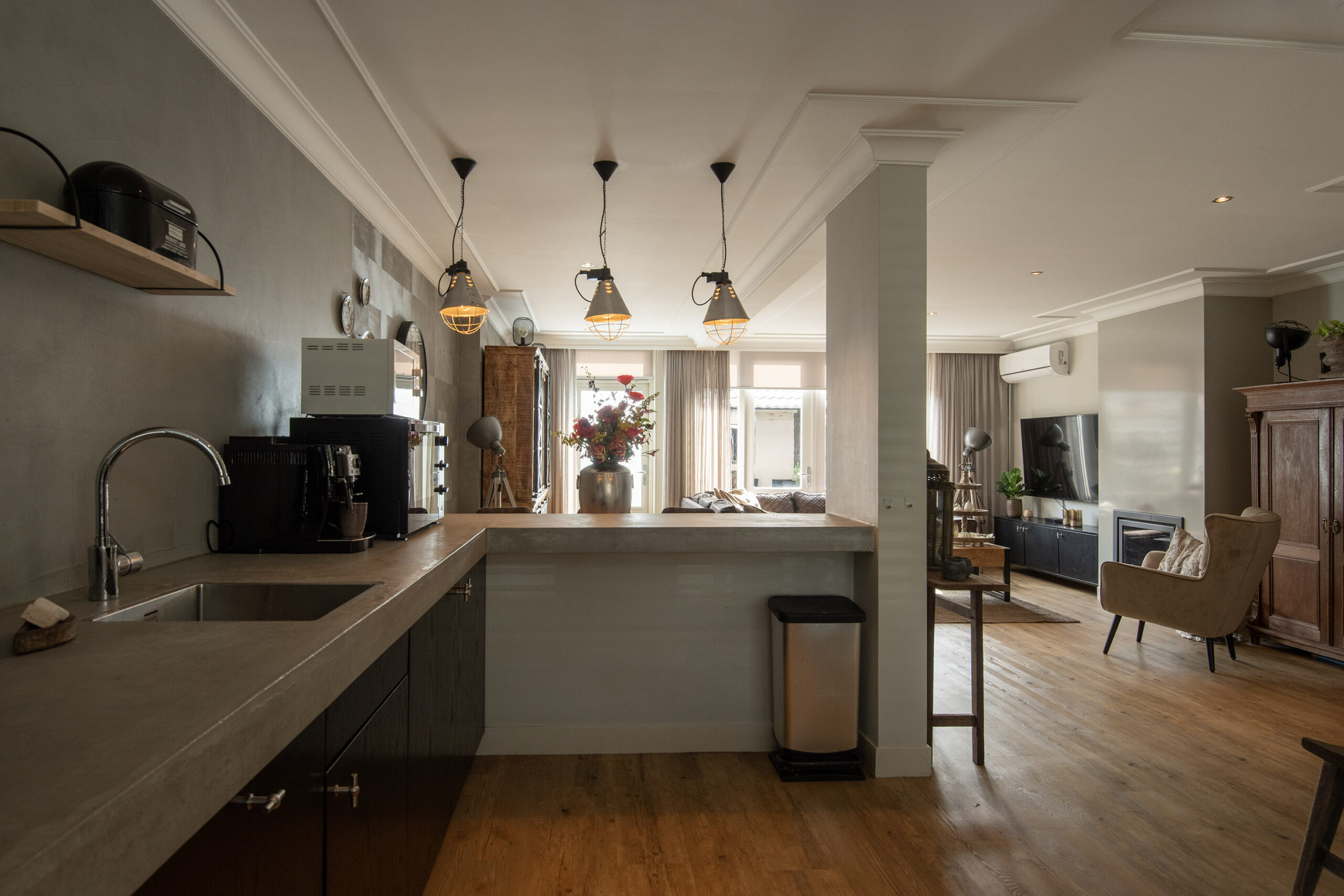 Hierdoor is er een royale leefruimte met open keuken ontstaan met een speelse indeling en veel lichtinval. Een ideale plek om samen te zijn, te koken en te genieten van het dagelijks leven.