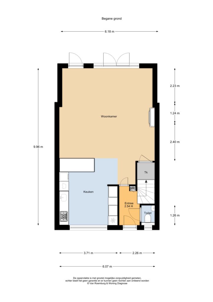 Via de overdekte entree is de woning bereikbaar. De hal is voorzien van een toiletruimte en trapopgang. Bij binnenkomst in de woon-/leefruimte valt direct de prettige lichte sfeer op. De luxueuze open keuken is aan de voorzijde gesitueerd en het zitgedeelte heerlijk tuingericht bij de openslaande deuren.